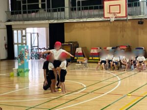 幼児組さんは、かけっこやリレー、体操の取り組み、バルーンに組体操と、様々な種目に挑戦していました!