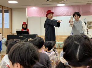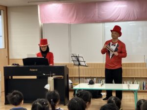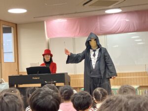 ちょっと怖いお面を被ったマジシャンも登場して、泣いてしまう子もいましたが、、、